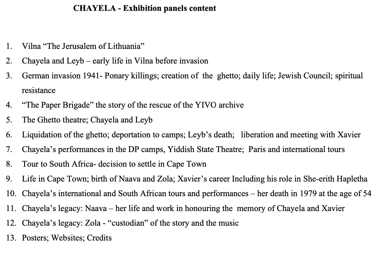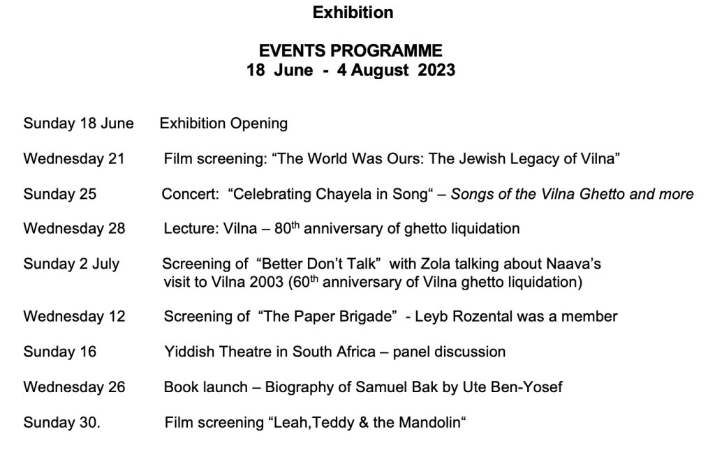 In June, 2023, the travelling exhibition Chayela – Wunderkind of the Vilna Ghetto will open at the Cape Town Holocaust & Genocide Centre in South Africa. The exhibition was conceptualized and developed by the CT Holocaust & Genocide Centre, and the launch will coincide with the 80th anniversary of the liquidation of the Vilna Ghetto by the Nazis in 1943.