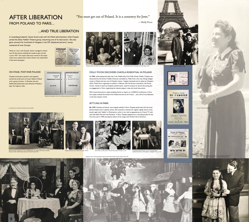 Against the backdrop of Vilna, “The Jerusalem of Lithuania”, the exhibition, explores Chayela’s pre-war life and her extraordinary tale of survival and resistance through her music, and that of her brother, the poet and composer Leyb Rozental, a member of The Paper Brigade, who was murdered in the Klooga camp. The exhibition also explores the connections to YIVO, and Chayela’s post war career and enormous contribution to Yiddish theatre internationally and on Broadway. Finally, the exhibition shows how Xavier and their daughters, Zola and Naava, continued the legacy of Chayela, after her untimely death at the age of 55.