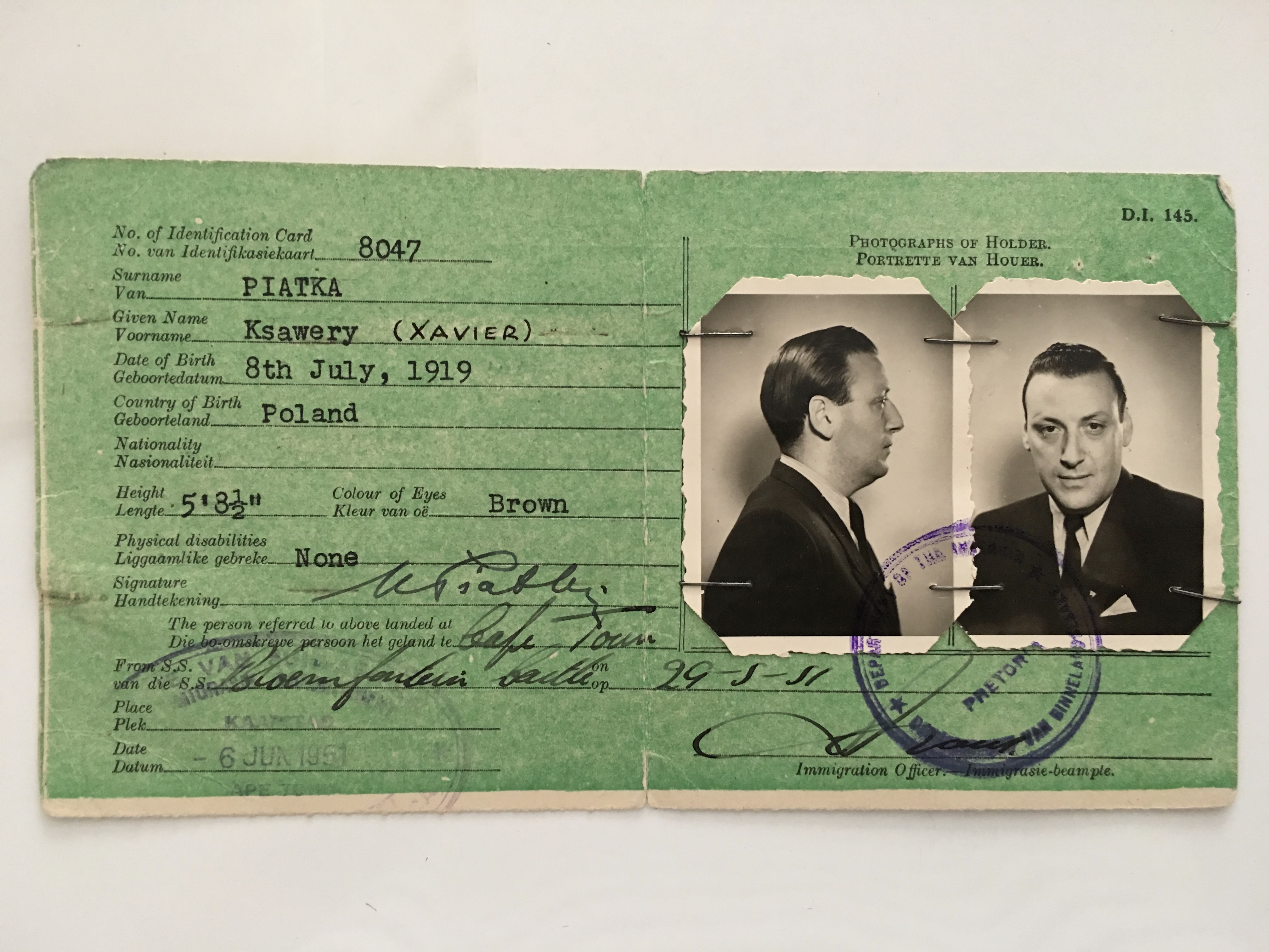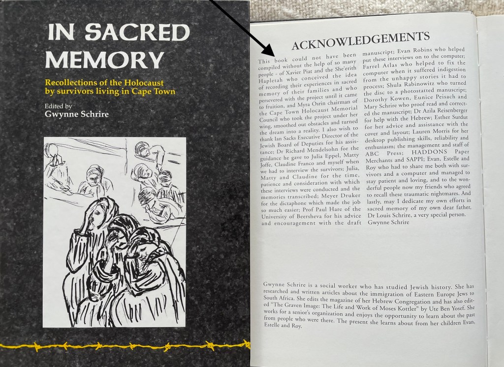 “When I arrived with my wife in Cape Town, in May of 1951, I was greeted by kind Jewish families, hosted, taken for drives, shown scenery, was introduced to others, and given work. I found myself not treated as an unnecessary burden of refugee status like a displaced object. A feeling of great thankfulness overcame me and I gave myself a word of honour, a promise to do what I could to be worth the confidence given to me on my arrival.”