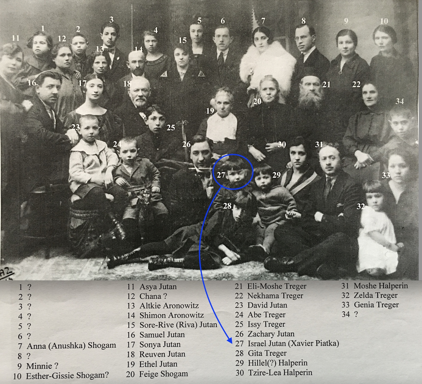 Xavier’s great-grandmother was Gitl, and married to Zacharye-Matys Yutan/Jutan, who had struck a deal with the police chief to register his twelve sons under different surnames, taking advantage of the law stating that if a family had only one son, he would not be eligible for military conscription. Thus, he saved his boys, including Xavier’s grandfather, Reuven (Wolf-Reuben), from the certain cruel fate of being a tormented Jew in the Tzar’s rigorous army. Most of Reuven’s younger brothers immigrated to different parts of the world, taking their surnames of Jutan, Utin, Utan, Yutan, Levy, Cohan, Cohen, Kaufman, and Katzeff with them. The majority of others and their families were killed by the Nazis.