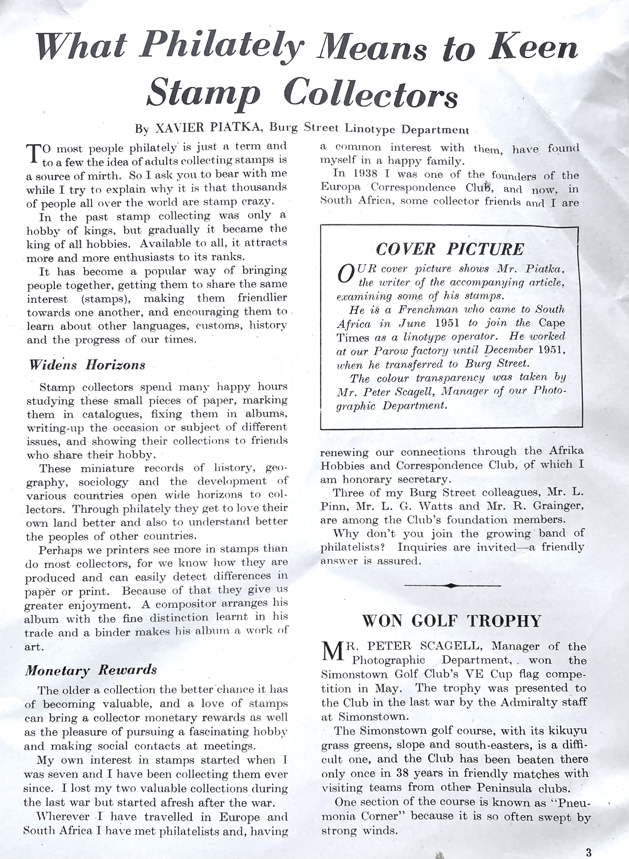Writer – Journalist – Advertising Agency – Newspaper Editor – Philatelist – Public Relations