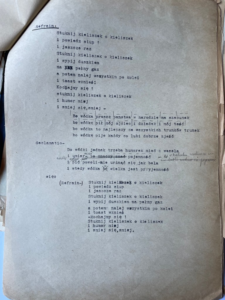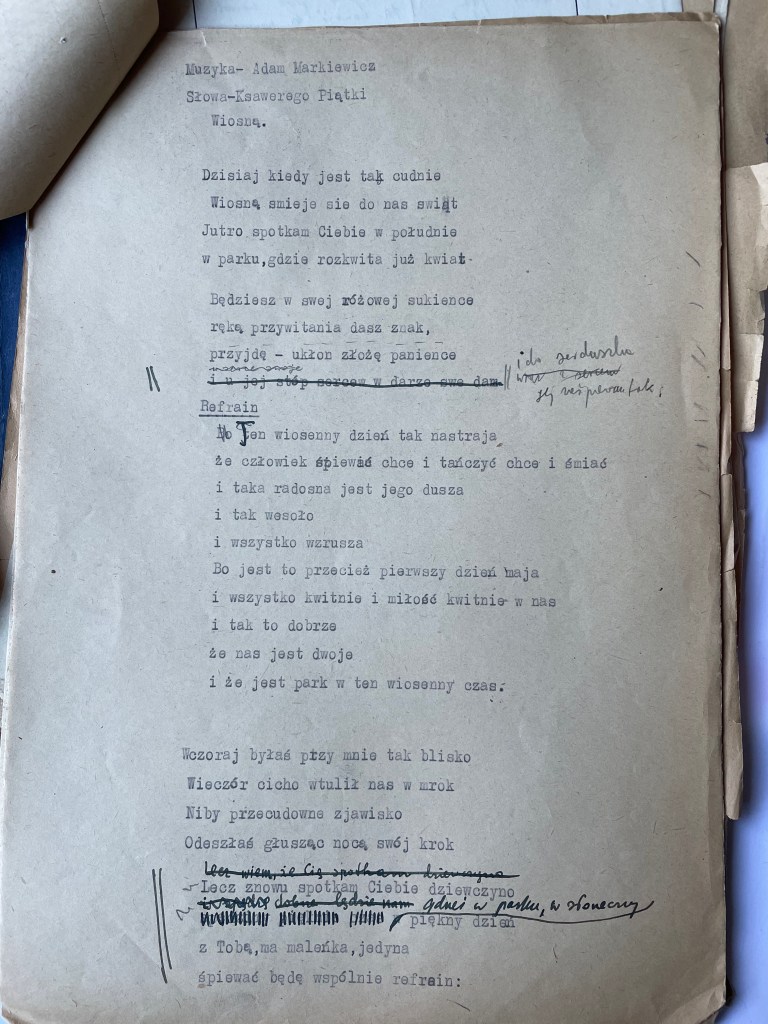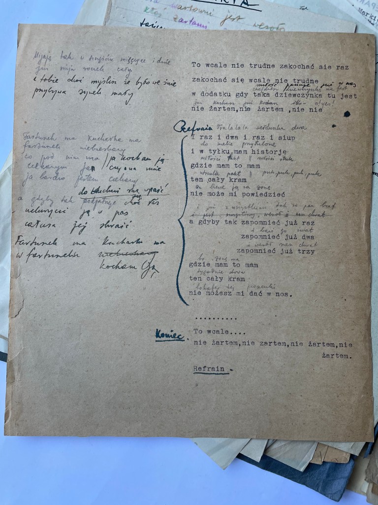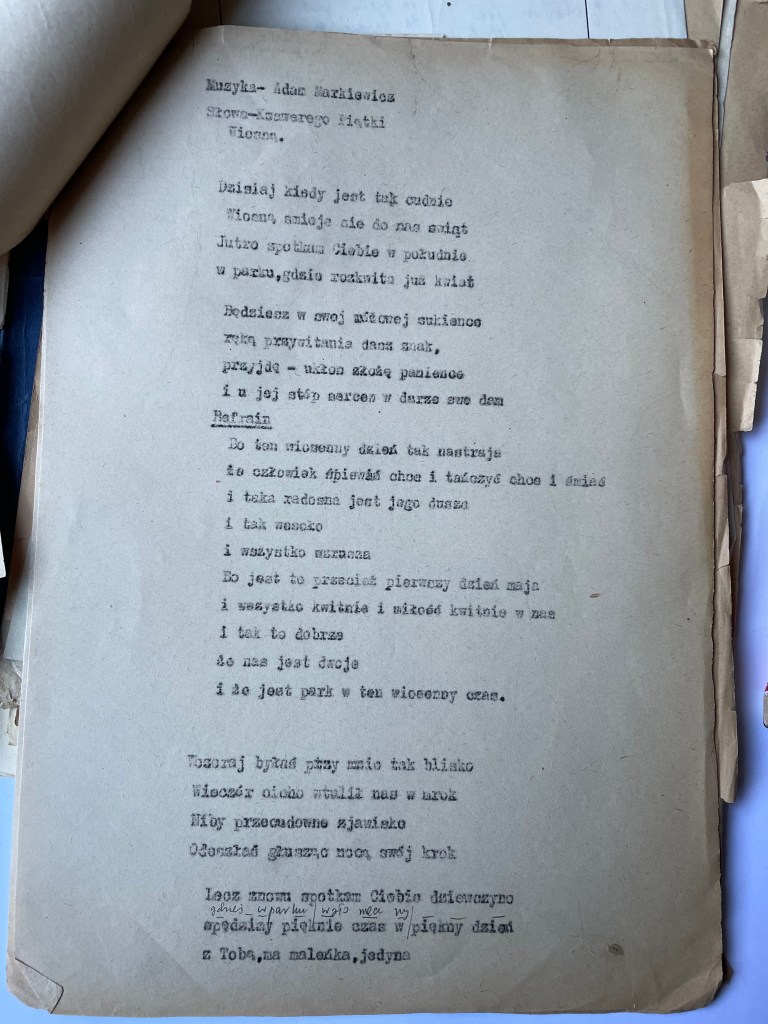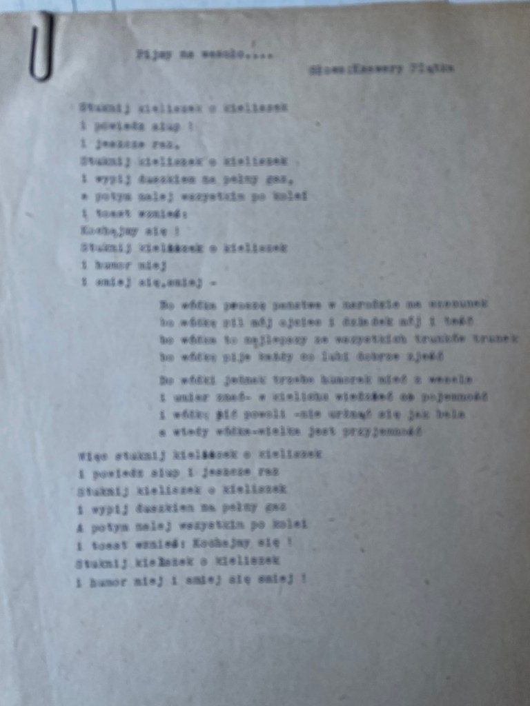 Malinowski organized official documentation, a union card and papers in his name, Xavier (Ksawery) Piatka, with a photograph and journalist status, bearing his signature and rank. These papers, stating his birthplace as Warsaw, were officially registered in the courts and this also protected them from being forced to return to Vilna where he would have been drafted to fight with the Russian army. The official name change also helped protect him from the antisemitic outbursts whilst working for a communist newspaper. And it was Xavier (“Ksawery Piontka” from Warsaw) who married Chayela early that year in this town of Bydgoszcz. Chayela, had joined the Jewish State Theatre group, and traveled around Poland, and Europe performing for refugees in displaced persons camps. Xavier, with his official Polish uniform and documents, worked on assignment in Wroclaw (Breslau) where Chayela, also performed.