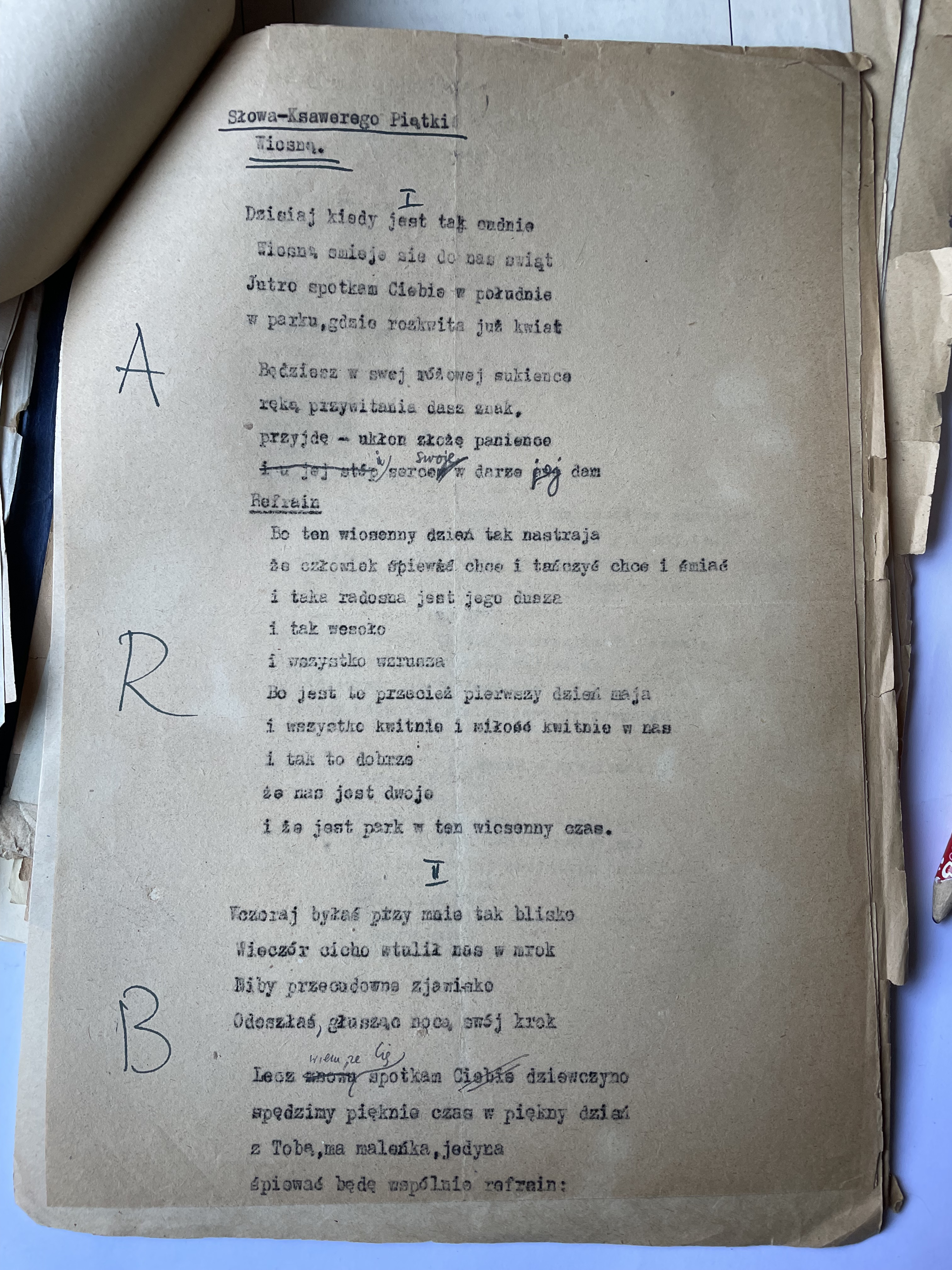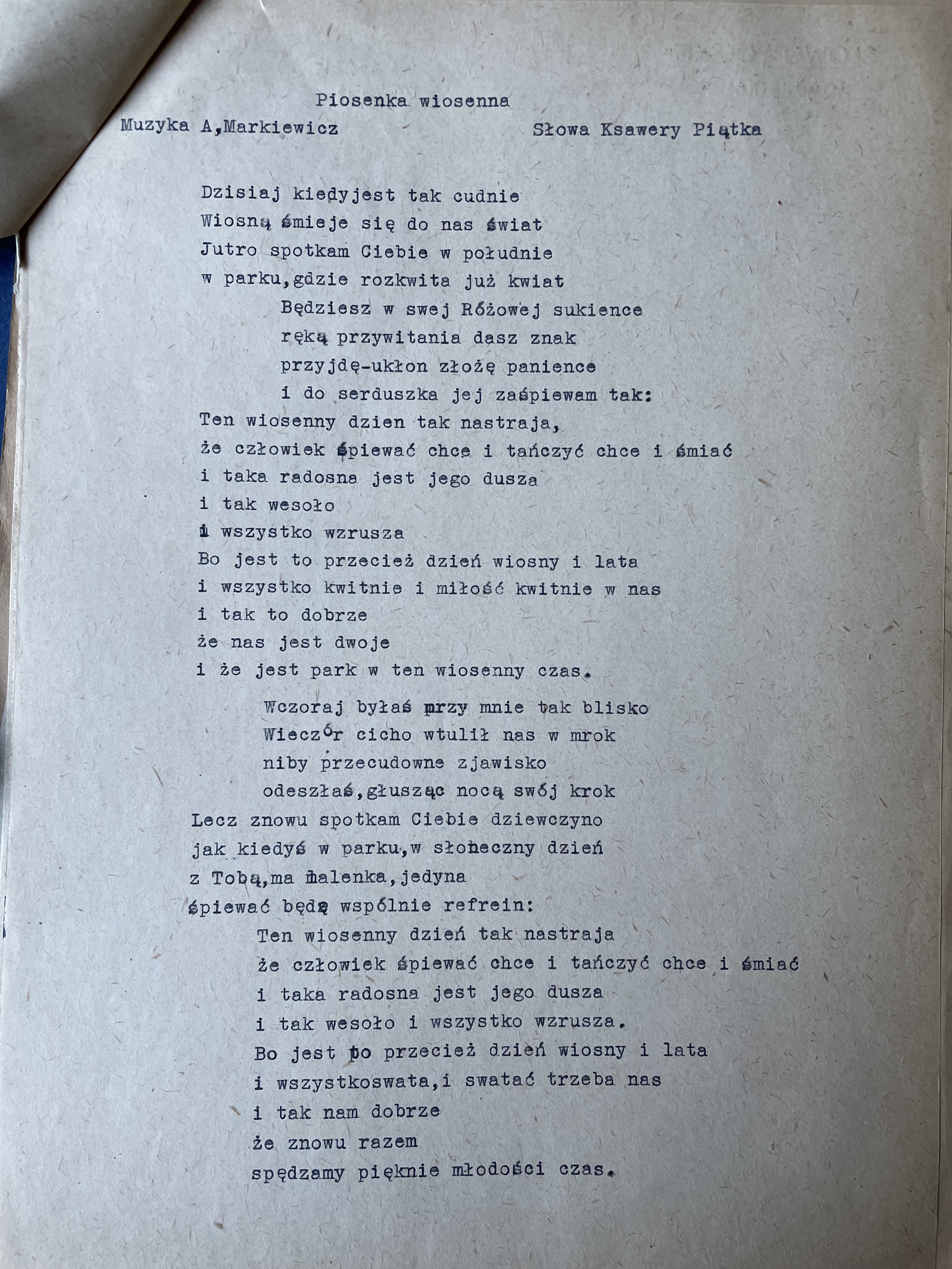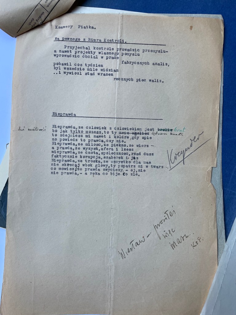 Malinowski organized official documentation, a union card and papers in his name, Xavier (Ksawery) Piatka, with a photograph and journalist status, bearing his signature and rank. These papers, stating his birthplace as Warsaw, were officially registered in the courts and this also protected them from being forced to return to Vilna where he would have been drafted to fight with the Russian army. The official name change also helped protect him from the antisemitic outbursts whilst working for a communist newspaper. And it was Xavier (“Ksawery Piontka” from Warsaw) who married Chayela early that year in this town of Bydgoszcz. Chayela, had joined the Jewish State Theatre group, and traveled around Poland, and Europe performing for refugees in displaced persons camps. Xavier, with his official Polish uniform and documents, worked on assignment in Wroclaw (Breslau) where Chayela, also performed.