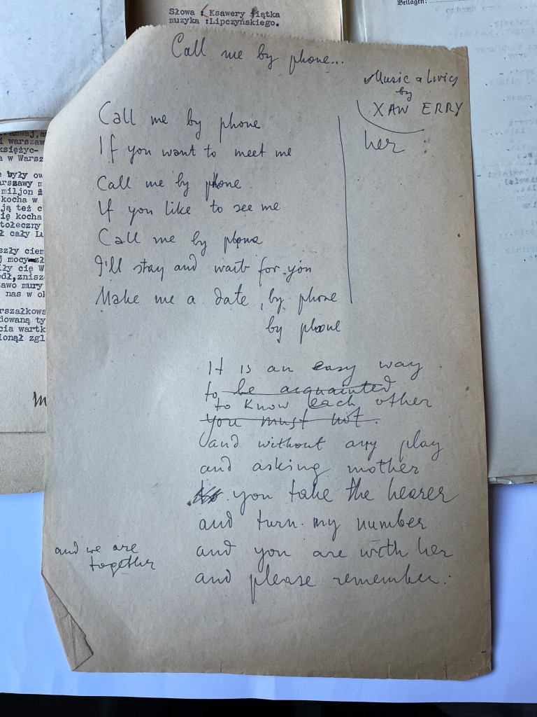 In 1946, the famous American Yiddish film actress, Molly Picon visited Poland and the surrounding Displaced Persons refugee camps. She saw Chayela on stage in the play “Grine Felde“. Recognizing Chayela’s talent, Molly promised to help her get out of Poland. Soon Chayela was invited to travel to Warsaw to meet the famous impressario, Sol Hurok. Molly had organized official letters that Xavier could take to the American Embassy and a military plane was arranged to transport Chayela and Xavier to Warsaw where Chayela performed ghetto songs for the audience of Sol Hurok, his secretary and American Ambassador and other dignitaries from the American Joint Committee officials. The successful reception led to a work contract for Chayela, organized by French impresario Leonides, and led to secure the relevant papers and official passports to allow Xavier and Chayela to legally go to Paris, France. Though safe passage was granted, it still needed to appear as if they would be returning to Poland. So, contacting his journalist friends in Warsaw, Xavier explained that he was going to search for his mother in France and convinced them that he should serve the Polish Press Agency by reporting on the forthcoming UNESCO conference in Paris – thus securing a legitimate reason for ‘temporarily’ leaving Poland. And so, in May 1948, leaving all his newly acquired many expensive possessions notorised as bequeathed to his sister-in-law, Mary, including the piano, Xavier and Chayela left Poland….. for “two weeks”. Xavier, with two suitcases of clothes, a camera and his typewriter…. and Chayela travelling on the same train using the papers that permitted her to leave in order to fulfill her new performing contract in Paris, set off for France.