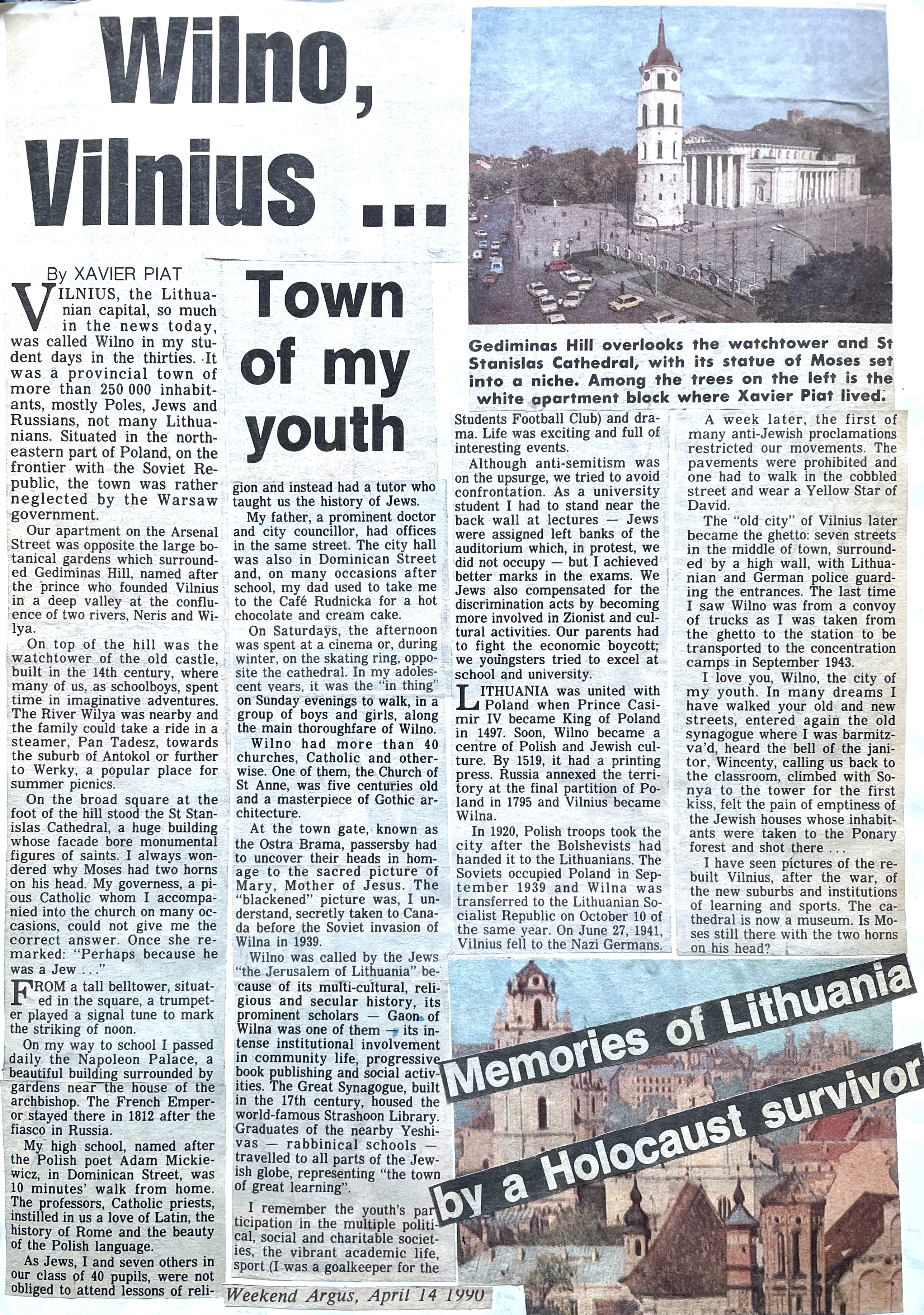 As a child, Xavier used to love playing in the beautiful botanical park and gardens just below Gediminas Hill, he would excitedly wait for the noon trumpet sounds to chime from the belltower in the town square, and have fun adventures with his shoolboy friends were had in the old castle at the top of the hill. He spent many afternoons at his father’s surgery doing homework and enjoyed his summer visits to their family ‘dacha’ (vacation house) in Charmy Boor. Soon after his parents got divorced in 1928, Xavier’s father married an older woman, a pediatrician, Rachel Tunkel. After his mother moved to Paris in 1930, Xavier would visit his mother there as often as he could. In his teens, Xavier began to collect stamps and had become an active member of a Zionist-Revisionist organisation, Masada. He studied Languages in the Vilna University and during an extended stay with his mother in France in 1938, during his late teens, Xavier studied journalism at École Supérieure de Journalisme university college in Paris.